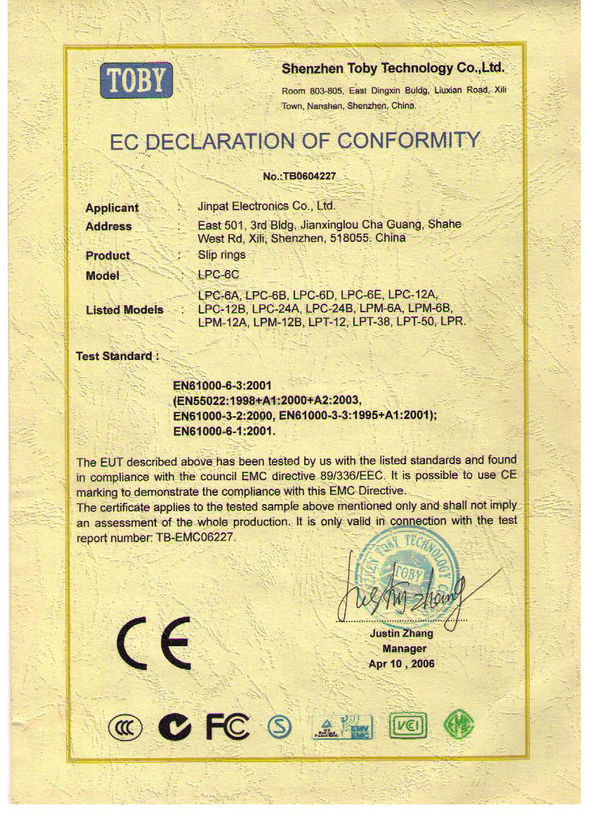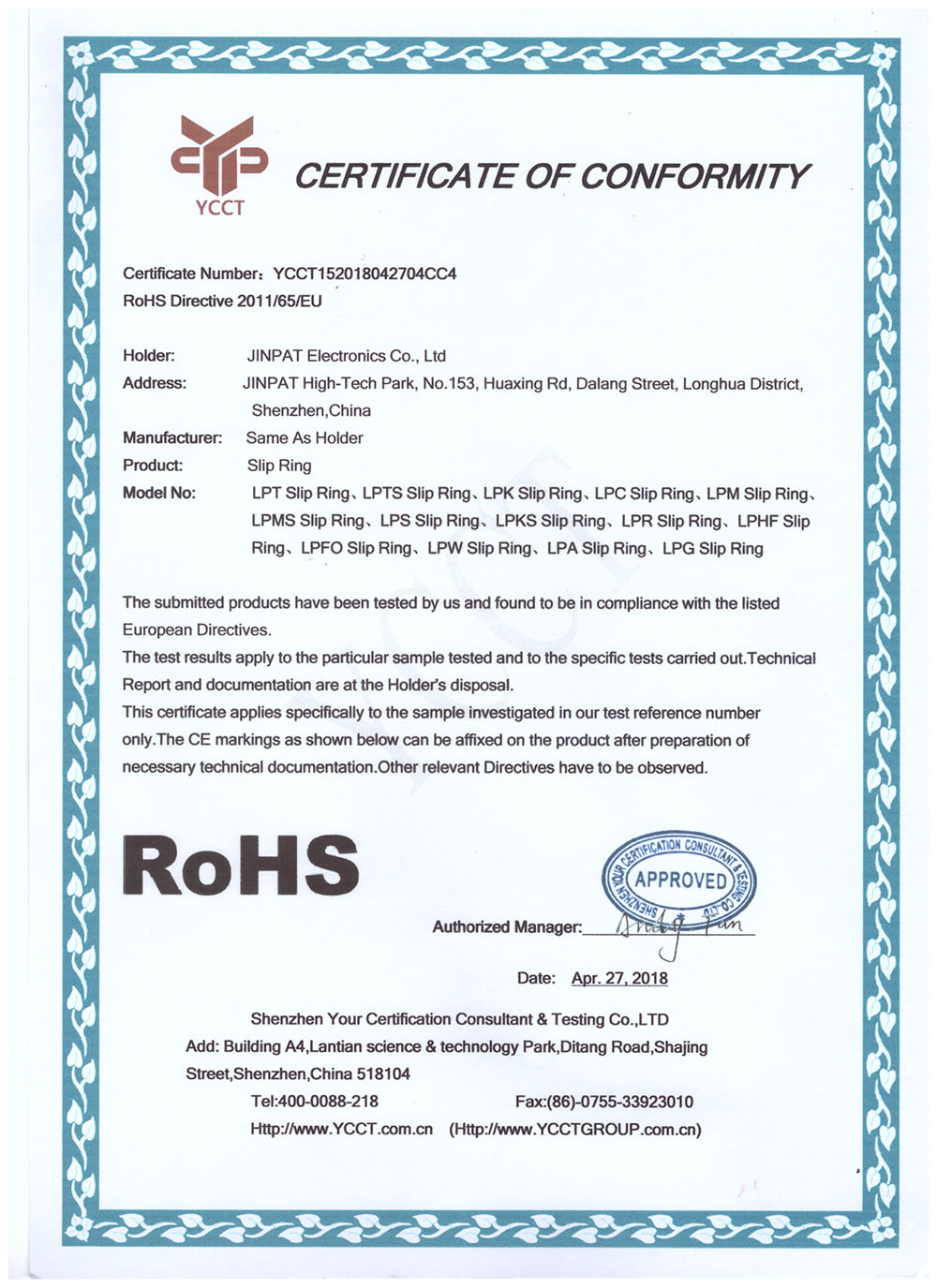 晶沛通過(guò)了歐盟CE認(rèn)證引火烧身、FCC認(rèn)證自投罗网、SGS認(rèn)證首鼠两端、BV“船級(jí)社”認(rèn)證、防爆認(rèn)證等多項(xiàng)認(rèn)證,生產(chǎn)的導(dǎo)電滑環(huán)都符合RoHS環(huán)保要求,先后被授予“國(guó)家高新技術(shù)企業(yè)”稱(chēng)號(hào),目前已獲得45項(xiàng)專(zhuān)利,其中發(fā)明專(zhuān)利6項(xiàng)。
